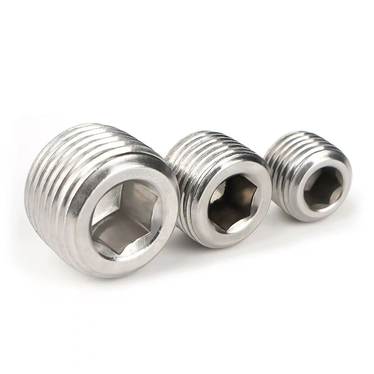 Kupite kvalitetne šesterokutne čepove sa konektorima sa ženskim navojem od Shenchija, profesionalnog proizvođača u Kini. Poznati i kao unutrašnji šestougaoni čepovi od nerđajućeg čelika, bitne su komponente za zaptivanje u industrijskim i vodovodnim sistemima cevi. Prvenstveno se koriste za zaptivanje krajeva cijevi, rezerviranih sučelja ili inspekcijskih otvora kako bi se spriječilo curenje medija. Naši šesterokutni čepovi sa konektorima sa ženskim navojem izrađeni su od nehrđajućeg čelika 304/316L korištenjem jednodijelnog procesa oblikovanja. Telo ima šestougaonu strukturu sa unutrašnjim navojem, što omogućava precizno uklapanje sa odgovarajućim cevima sa spoljnim navojem. Nude prednosti kao što su otpornost na koroziju i pritisak, te sigurno zaptivanje. Unutrašnji šestougaoni dizajn je kompatibilan sa specijalizovanim ključevima, čineći zatezanje praktičnim i osiguravajući ravnomernu raspodelu sile. Pogodni su za različite primene zaptivanja cevi i obezbeđuju dugotrajnu trajnost nakon ugradnje, obezbeđujući stabilan rad cevovodnog sistema.